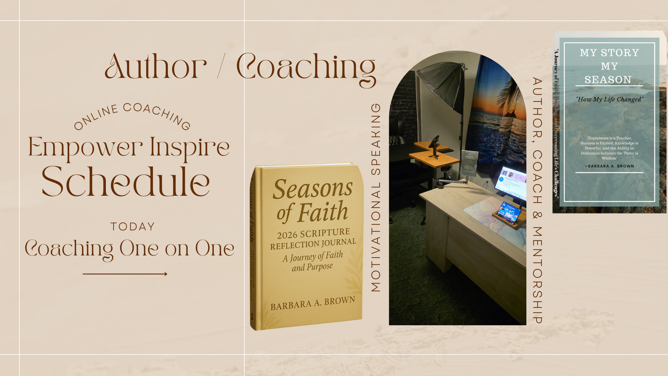 Empower Inspire Coaching, Barbara A Brown, Christian life coaching, faith coaching for women, Christian motivation, spiritual growth, mindset coaching, purpose coaching, biblical inspiration, encouragement for women, faith journey, personal development Christian, My Story My Season, Christian empowerment, Christian women motivation, life transformation, faith based coaching, inspirational messages, Christian purpose, Kingdom mindset